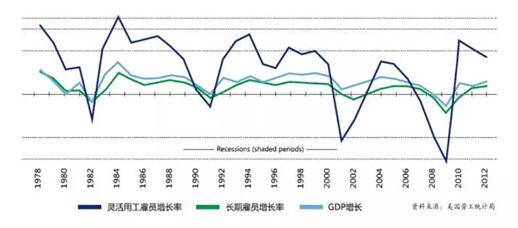 第四,女性“三期”员工造成的岗位空缺。这种空缺是临时性的,企业可以顺利获得外部人才租赁,以解燃眉之急。例如,因“二胎”政策为企业带来更多“三期”的困惑,尤其是女性员工集中的部门,如一家著名企业财务共享服务中心,“三期”员工占比10%。企业无法顺利获得增加现有员工工作量来完成工作,而灵活用工则可满足这种临时性的岗位空缺,帮助企业大大减轻用工压力和成本。