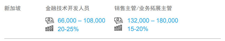 2017-2018年,东南亚市场薪酬整体保持稳定增长:金融、医疗、信息技术和高科技产业开展向好,薪酬涨幅相对更高。从地区看,新加坡薪酬的薪酬涨幅水平相对较低,跳槽涨幅在10-15%。(文中部分数据是北京知名猎头公司Ezpay(中国)国际专家顾问的分析预测,供企业HR和猎头参考)